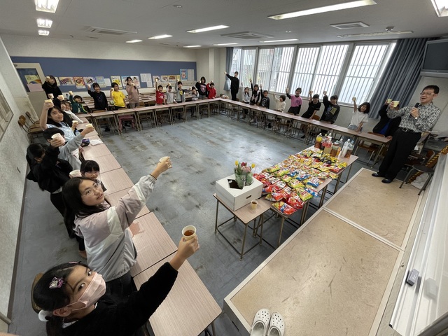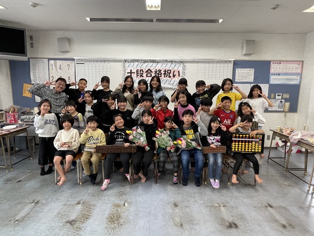 2月22日(土)に「十段合格祝い」を行いました。・大城蓮香さん(長田小5年)暗算十段・宮里優成さん(港川小5年)珠算十段・石塚 樹さん(港川小3年)珠算十段・比嘉海翔さん(昭薬附高1年)珠算十段以上の4名が昨年一年間で十段合格しました!参加した生徒のみなさんで乾杯!チーム対抗ゲームなどで盛り上がり、楽しいひと時を過ごしました。