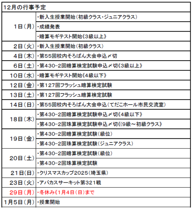 11月、12月の行事予定